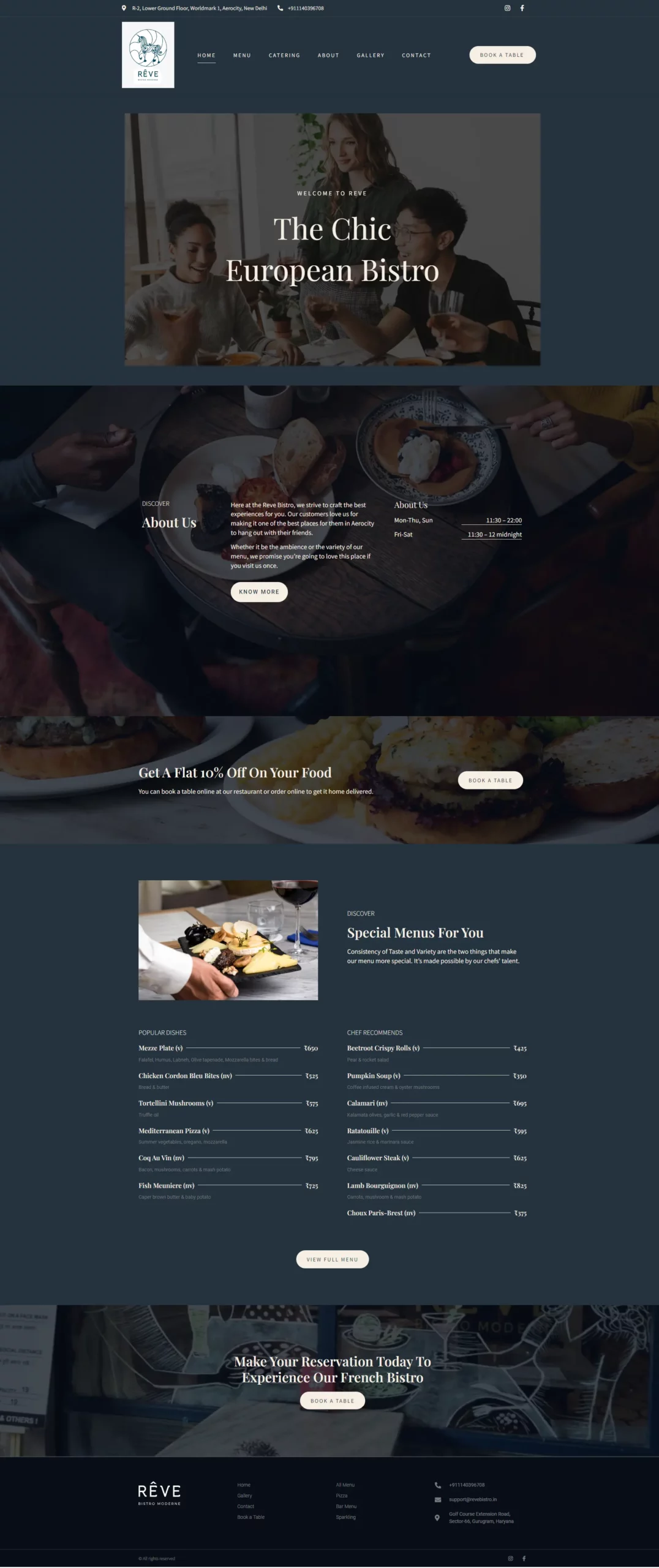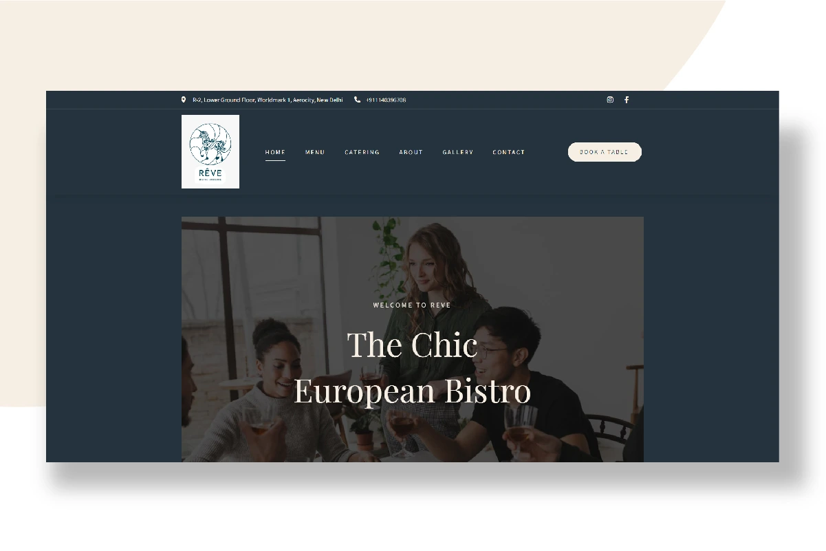 Reve Bistro is one of the brands of ICS Foods Pvt. Ltd. It is a European styled restaurant located to Gurgaon. I redesigned their website with a feature to help potential customers book table online on the website.